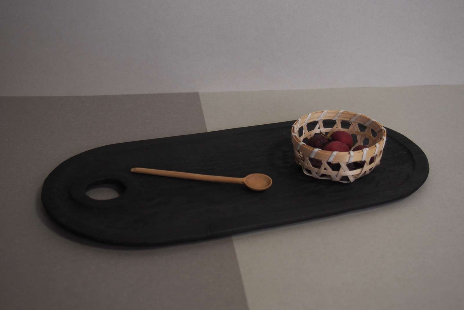 serving torē and cherry spoon. cherry, ebonised cedar