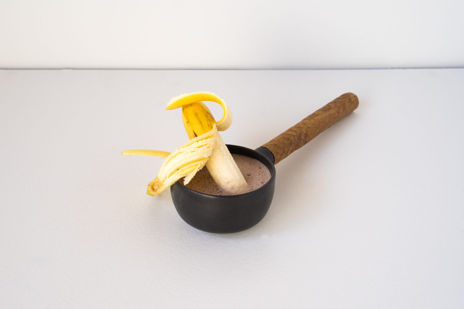 Pot on a handle, warm chocolate milk & banana dippy dips.