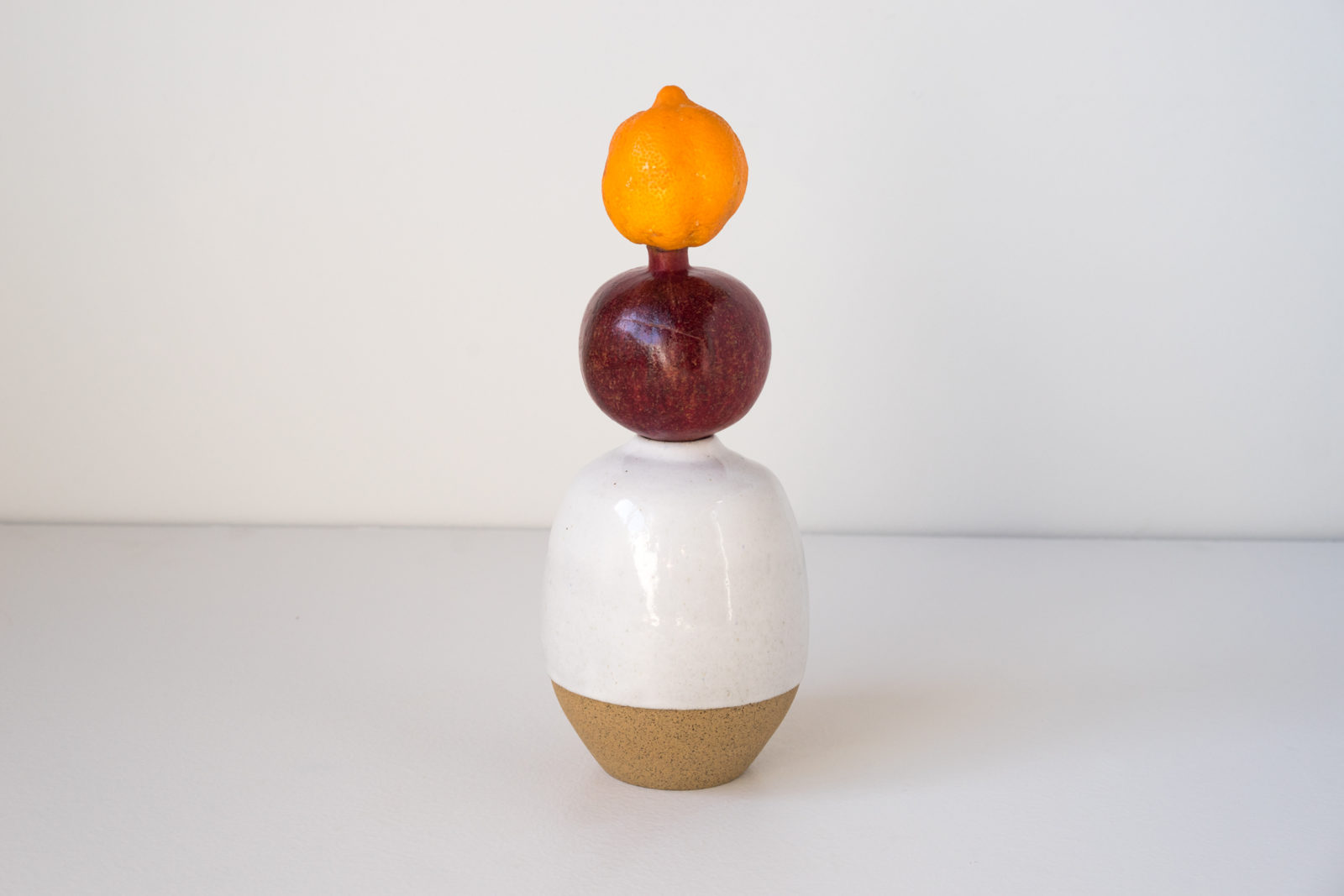 White glaze vase, pomegranate and lime stack.