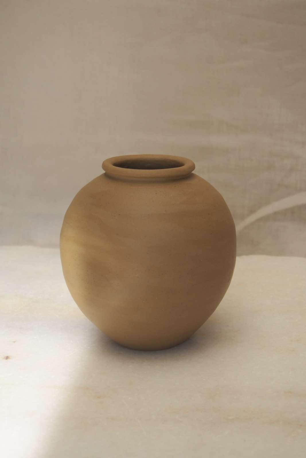 suck and suu style child moon jar, raw terracotta