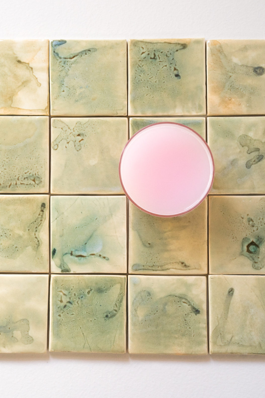 White clay Rimu ash tiles & strawberry milk.